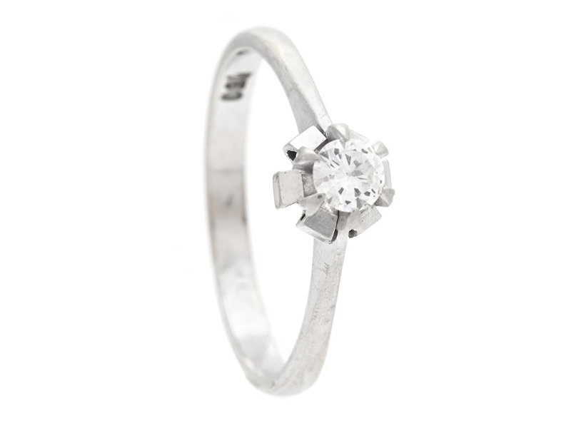 SOLITAIRE RING, 18K white gold, brilliant cut diamond 0,20 ct, approx. TW/VS, size 18 mm, weight 2,4 g, diamond with notch on the culet.