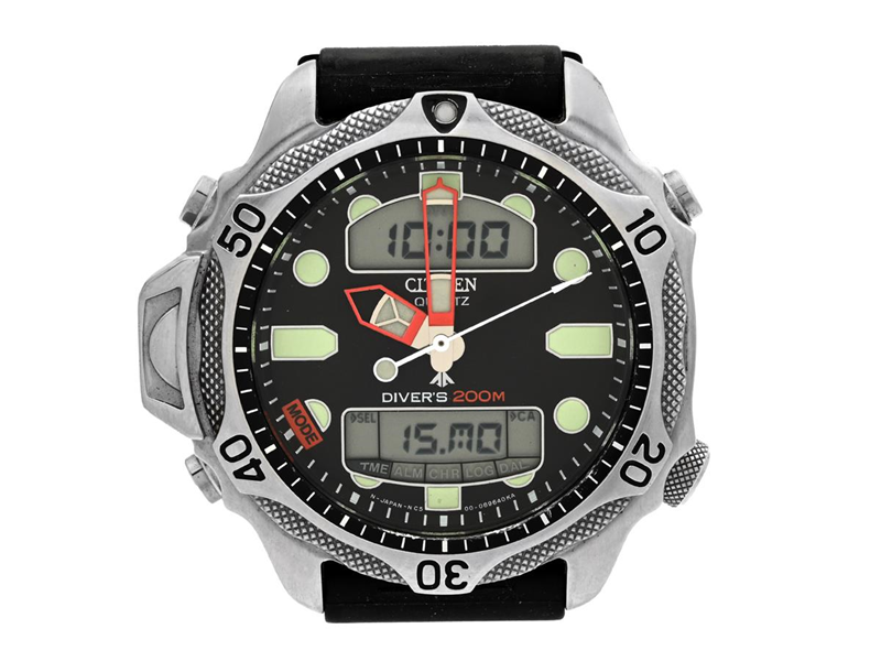CITIZEN, Promaster Divers (200M), Aqualand, Serial no. 3N1020189, Case no. C500-S016061, men´s wristwatch, 46 mm, analog/digital, steel, quartz, mineral crystal, rubber strap, approx. 2003.