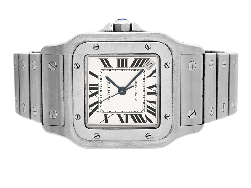 CARTIER, Santos Galbée, Cal 049 (ETA 2892A2), Ref no. W20098D6, Case no. 850568 CE/2823, men´s wristwatch, 45,54 x 34,87 mm, steel, self winding, sapphire crystal, date, original bracelet, folding clasp, certificate, February 2008.
