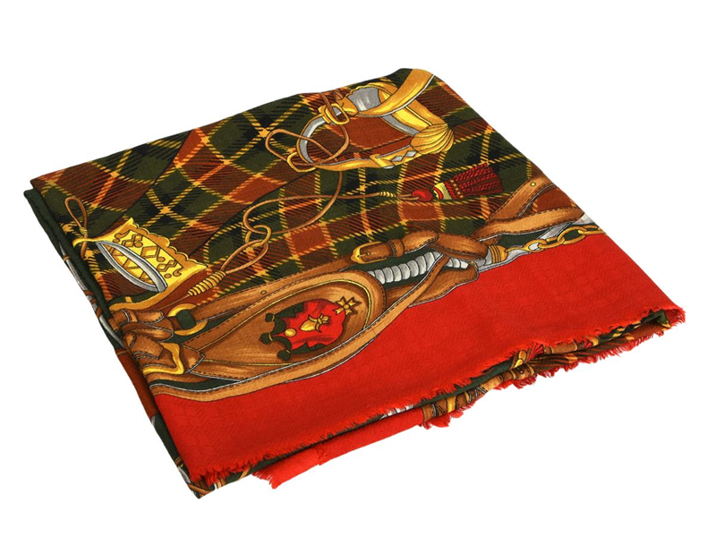 SCARF, GUCCI, silk and wool blend, approx. 135x140 cm, red, green, blue, yellow, pulled threads.