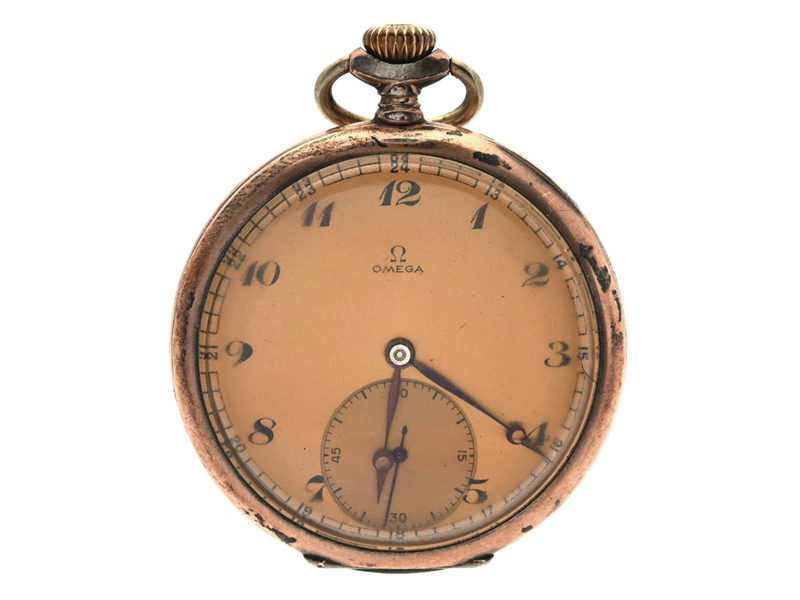 OMEGA, pocket watch, 49 mm, Serial no. 9925084, Case no. 52, silver (800), lever escapement, damaged dial, glass broken, approx. 1930.