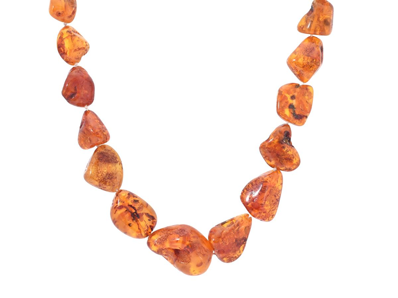 NECKLACE, amber, graduated 7-21 mm, length approx. 65 cm, knotted, weight 36,1 g.