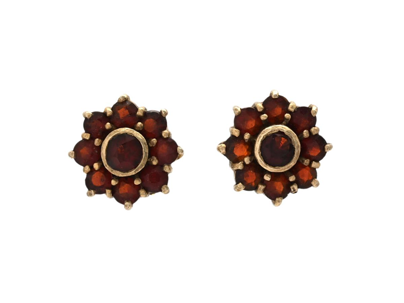 EARRINGS, gold plated silver, garnets, one push back in 18K gold, weight 2,4 g.
