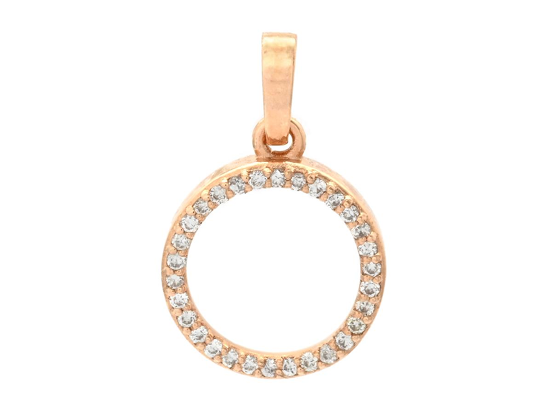 PENDANT, 18K rose gold, 30 brilliant cut diamonds approx. 0,09 ctw, approx. TW-W/VS, circle height inc loop 15 mm, weight 0,7 g, one yellowish and one of lower quality.