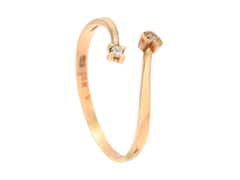RING, 18K gold, brilliant cut diamond and princess cut diamond approx. 0,06 ctw, approx. TW-W/VS, open model, size 17,5 mm, weight 1,1 g, weak construction.