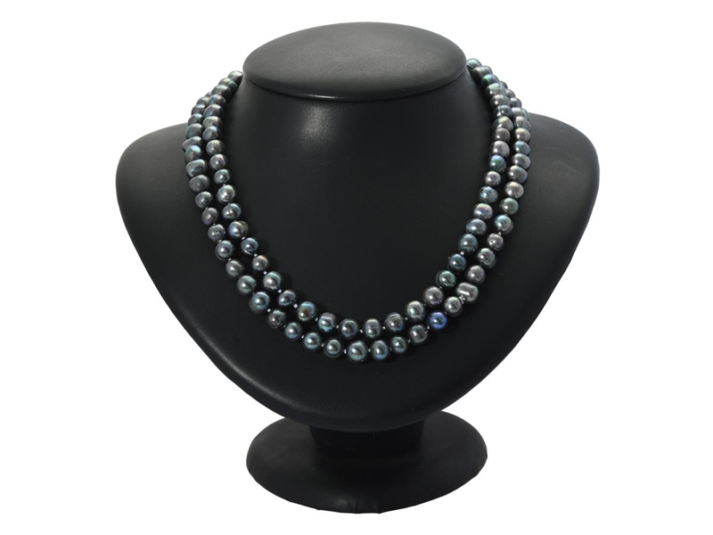 PEARL NECKLACE, cultured dyed freshwater pearls, knotted, length 124 cm.
