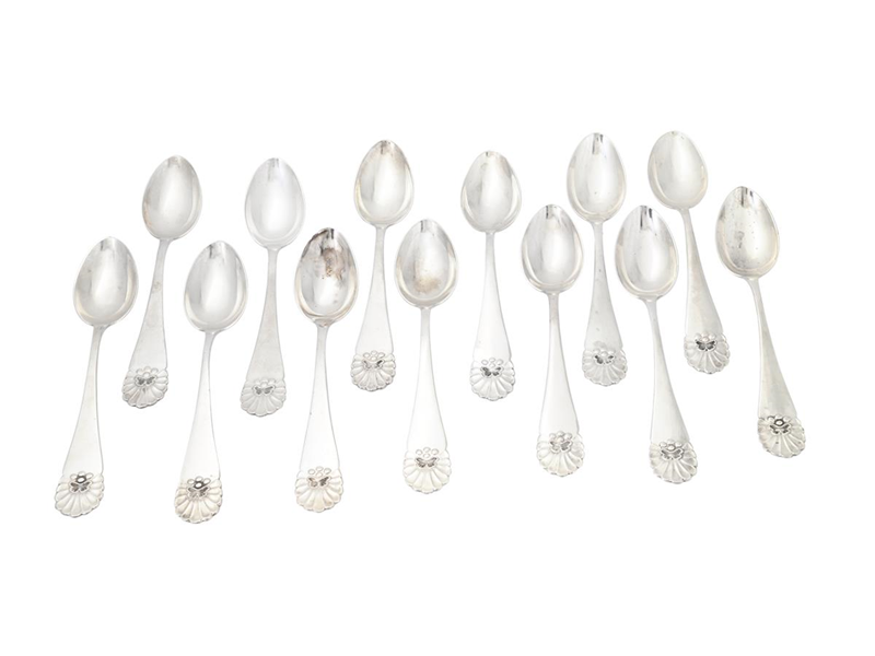 COFFEE SPOONS, 13 items, silver, floral decoration, length 10,2 cm, total weight 112 g.