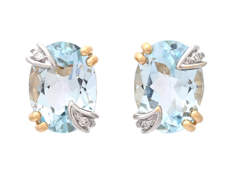 EARRINGS, 18K gold/white gold, oval cut topazes, single cut diamonds approx. 0,01 ctw, pushback, weight 2,2 g.