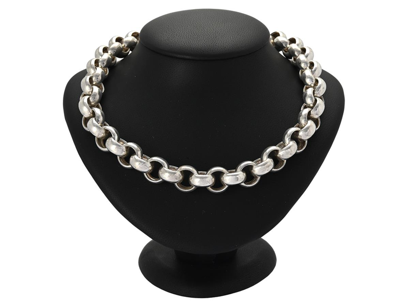 CHAIN, silver, "loop-in-loop-link", width approx. 1,5 cm, length approx. 46 cm, weight 147,2 g.