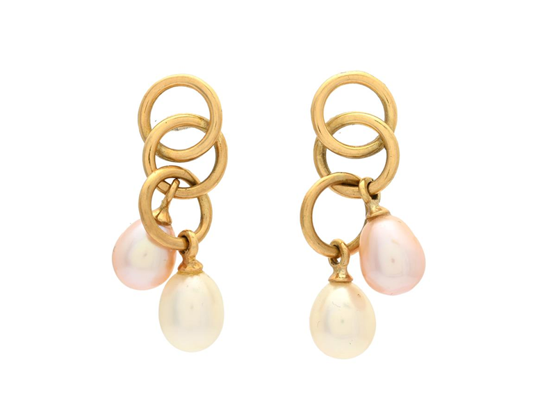 EARRINGS, 18K gold, cultured freshwater pearls, height 29 mm, weight 5,3 g, pushback.