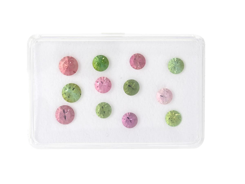12 TOURMALINES, brilliant cut, 7,07 ctw, approx. 5,0-5,2 and 6,0-6,1 mm.