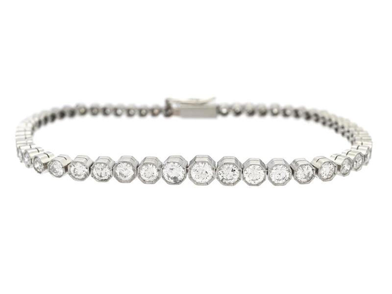 TENNIS BRACELET, platinum, brilliant cut diamonds approx. 3,60 ctw, approx. R-Cr/SI-P, France, length 18 cm, weight 14,2 g.