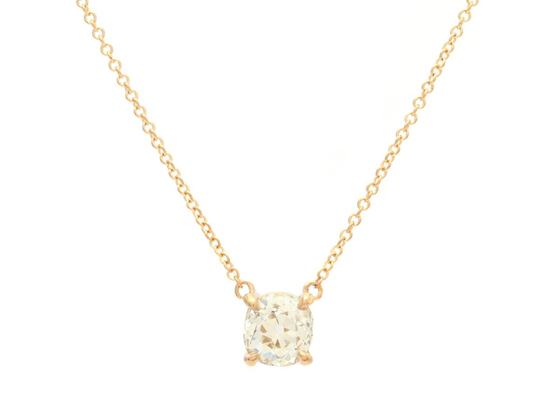 SOLITAIRE NECKLACE, 18K gold, antique cut 1,04 ct, TCa(L)/VS2, length 42/45 cm, weight 2,2 g, the diamond has small notceh and small damage on the crown.