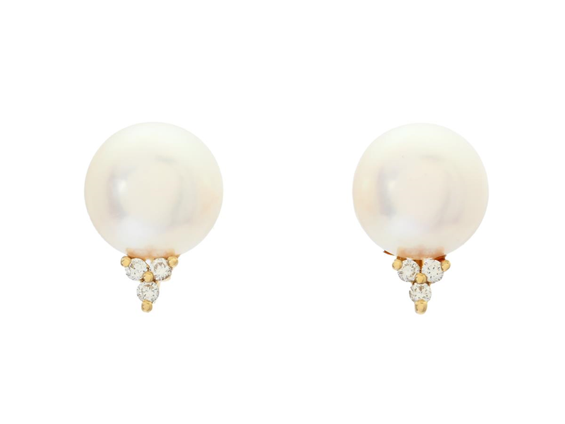 PEARL EARRINGS, 18K gold, cultured pearls 8 mm, brilliant cut diamonds approx. 0,06 ctw, approx. W/VS-SI, pushback, 2,9 g.