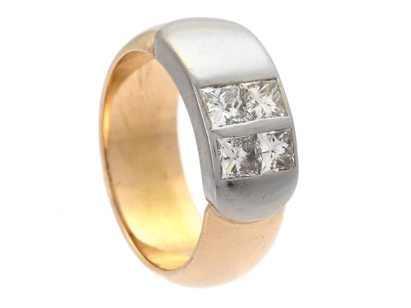 ROLF KARLSSON, ring, 18K gold/white gold, 4 princess cut diamonds approx. 0,60 ctw, Stockholm, size 16 mm, weight 9,7 g, diamonds has worn facet edges, paper box.