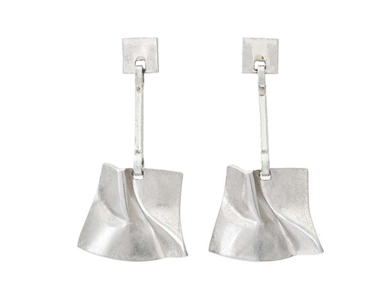 LAPPONIA, earrings, sterling silver, Finland 1970, height 52 mm, pushback, weight 17,7 g.