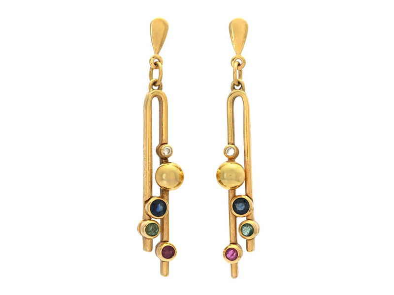 EARRINGS, 18K gold, sapphires, diamonds, rubies, emeralds, height 44 mm, weight 6,5 g.