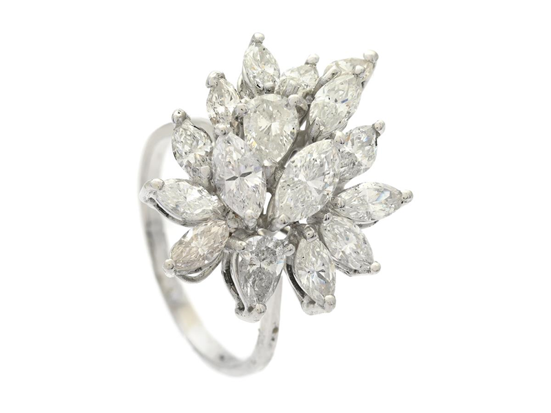 RING, 18K white gold, navette- and pear shaped diamonds approx. 2,90 ctw, approx. TW-TCr/VS-P, size 18,75 mm, weight 6,1 g, a few diamonds with notches.