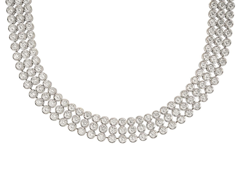 NECKLACE, 18K white gold, brilliant cut diamonds approx. 33,00 ctw, approx. R-TW/VVS-VS, length 39 cm, weight 106,6 g, some diamonds has notches on the culet.