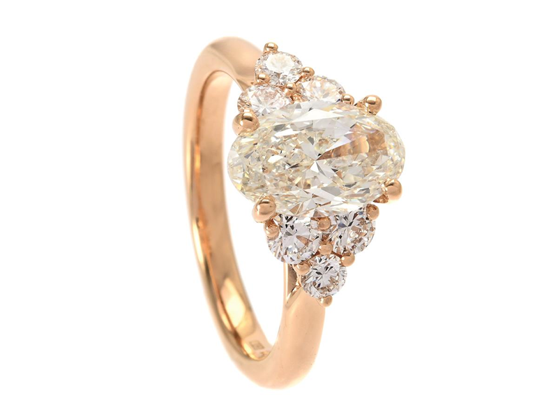 RING, 18K gold, oval cut diamond 1,79 ct, approx. Cr(J)/SI2, 6 brilliant cut diamonds 0,56 ctw, TW/VS, size 16,5 mm, weight 4,5 g.