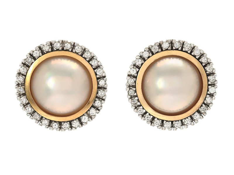 OLE LYNGGAARD, earrings, 18K gold/white gold, mabé pearls, 48 brilliant cut diamonds 0,96 ctw, approx. W/VS, diameter 21 mm, weight 22,9 g, clips, original case.