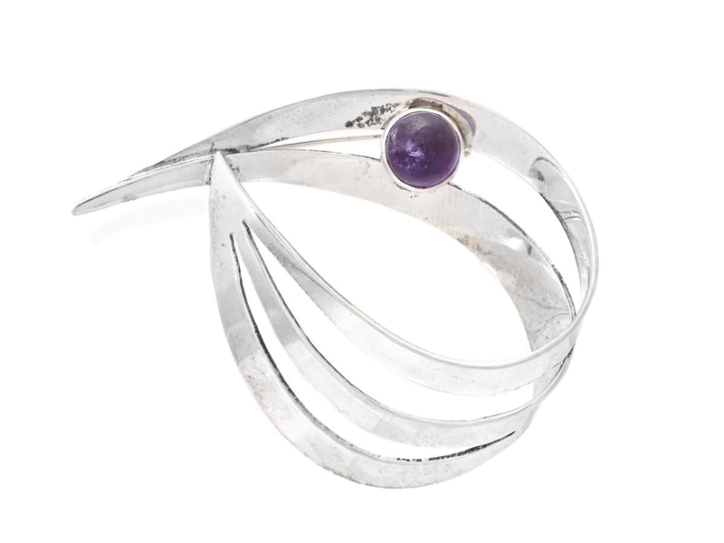 BROOCH, silver, cabochon cut amethyst, Kaplan, Stockholm 1964, measurements 3,6x4,8 cm, weight approx. 7 g.