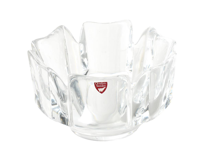 BOWL, glass, Lars Hellsten for Orrefors, serial Corona, signed bottom, height 9,4 cm, diameter 14,6 cm.