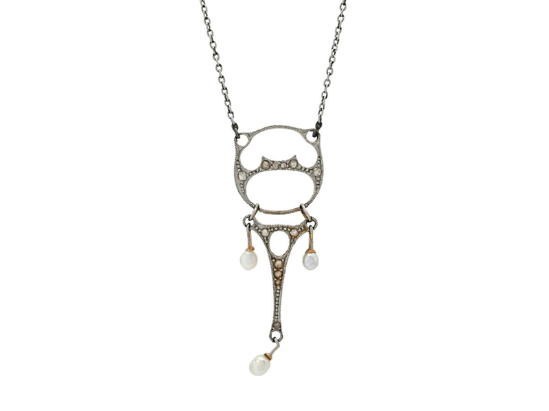 NECKLACE, 18K gold, platinum, chain i platinum and partly silver, rose cut diamonds, pearls, length 61 cm, weight 7,1 g, the pearl at the bottom hangs crooked.
