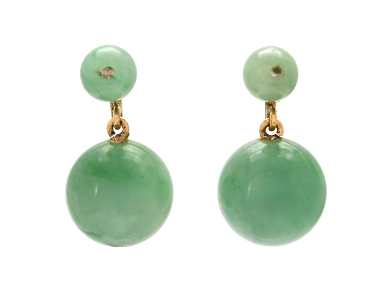 EARRINGS, 18K gold, beads in jade approx. 4,7-9,1 mm, height 17 mm, weight 4,4 g, pushback.