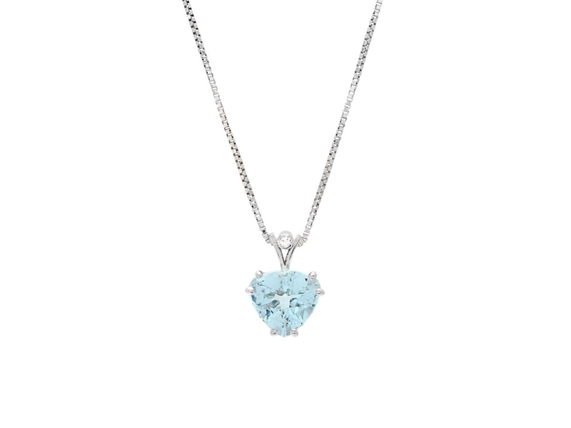 PENDANT/CHAIN, 18K white gold, trilliant cut aquamarine approx. 1,50 ct, brilliant cut diamond approx. 0,01 ct, length 40 cm, weight 2,9 g, the aquamarine has small notch.