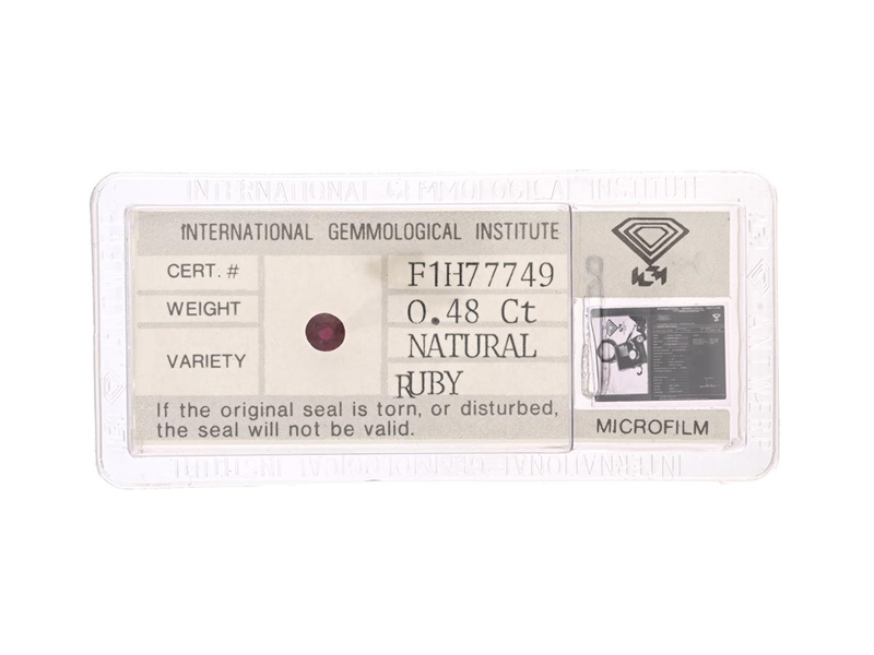 RUBY, oval-cut, 0,48 ct, certificate F1H77749, IGI seal.