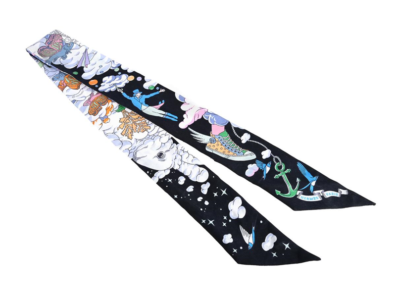 SCARF, HERMÈS, Twilly, 100% silk, 84x5 cm, black, white, blue, purple, orange.