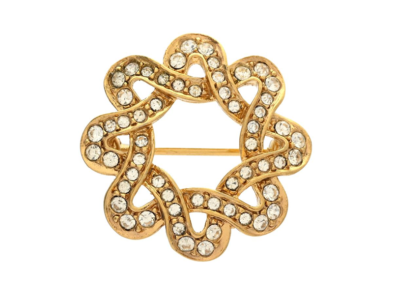 BROOCH, NINA RICCI, gold-tone metal, white stones, approx. 2x2 cm, weight 4,85 g.