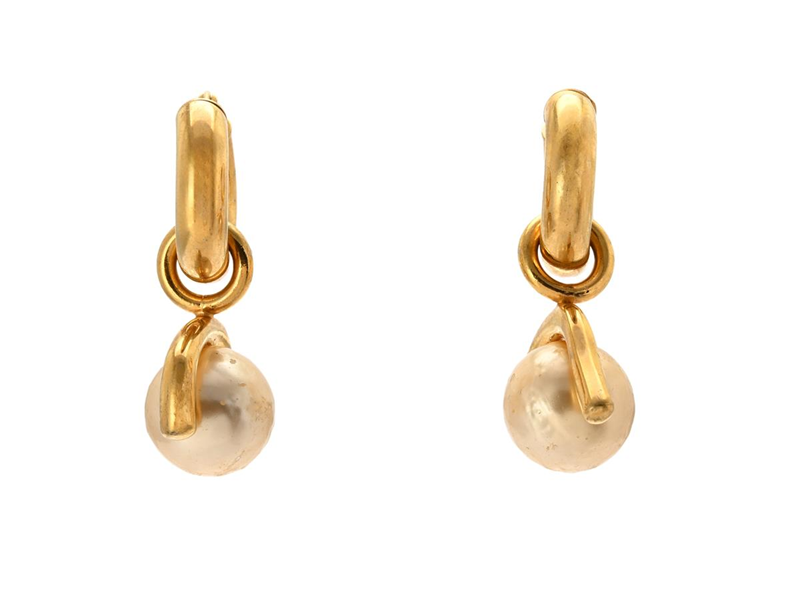 EARRINGS, CELINE, gold-tone, white imitation pearl, pushback, weight 32 g, signs of wear.