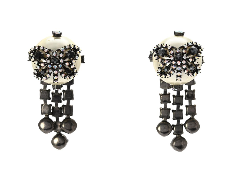 EARRINGS, CHRISTIAN DIOR, white imitation pearl, white stones, motif butterfly, motif star, pushback, weight 17 g,