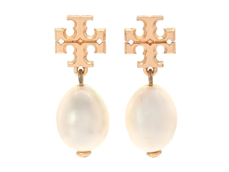 EARRINGS, TORY BURCH, cultured pearls, yellow metal, pushback, length 3 cm, weight 6,8 g.