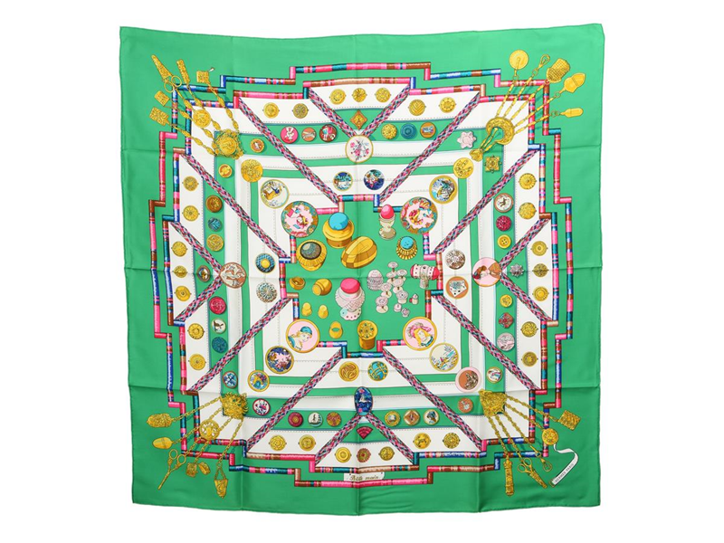 SCARF, HERMÈS, Petite Main, Caty Latham, 100% silk, 90x90 cm, green, white, pink, yellow, cover.