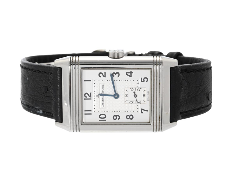 JAEGER-LE COULTRE, Reverso, Grande Taille, Cal 822, Serial no. 2472173, Ref no. Q2708410, Case no. 270.8.62, men´s wristwatch, 26 x 36,5 (42,3) mm, steel, manual winding, sapphire crystal, small seconds hand, leather strap, folding clasp, approx. 2007, box (damaged).