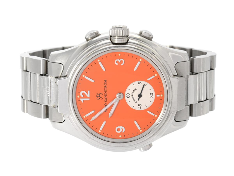 SJÖÖ SANDSTRÖM, Chronolink, Worldtimer UTC, Cal SS G2 (ETA 7001), Serial no. 2332, Ref no. WT 6202, men´s wristwatch, 40 mm, steel / titanium, analogue/manual winding, digital/quartz, sapphire crystal, small seconds hand, replaced dial (Tritium), original bracelet, folding clasp, approx. 2004, box, paper box.