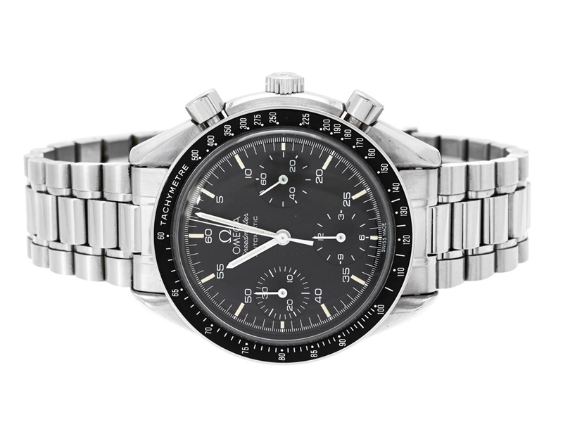 OMEGA, Speedmaster, Reduced, "Tachymetre", Cal 1140 (ETA 2890A2), Serial no. 53331094, PIC no. 3510.50.00, Ref no. ST 375.0032, Case no. 175.0032/175.0033 (LL), chronograph (does not reset correctly), men´s wristwatch, 39 mm, steel, self winding, plastic crystal, original bracelet, folding clasp, Ref no. 1469/811, approx. 1998.