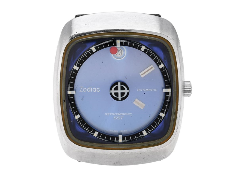 ZODIAC, Astrographic SST, Cal 88 D, Case no. 882 963, men´s wristwatch, 36 x 42 mm, steel, self winding, mineral crystal, date, leather strap, original buckle, approx. 1972.