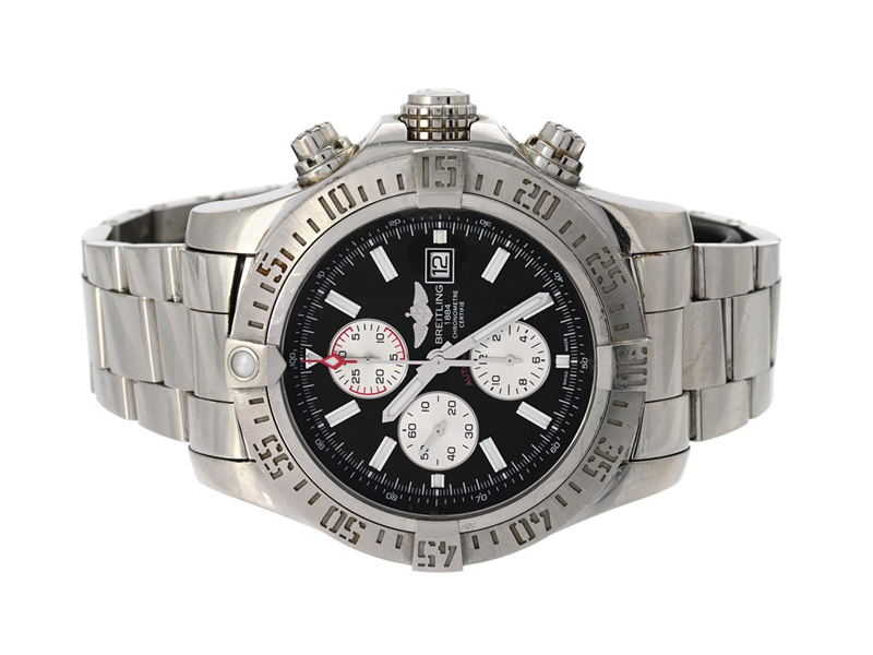 BREITLING, Super Avenger II, Chronometre, Cal 13 (ETA 7750), Movement no. 2903750, Serial no. 2903750, Ref no. A1337111, Case no. 2518 B5, chronograph, men´s wristwatch, 48 mm, steel, self winding, sapphire crystal, date, Professional bracelet III, folding clasp, Ref no. W0718/168A, certificate, June 2018, box, paper box.