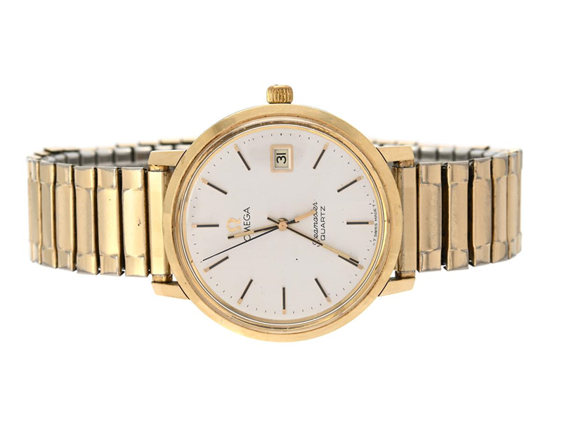 OMEGA, Seamaster (-T Swiss Made T-), Cal 1342, Serial no. 40753045, Ref no. CD 196.4008, Case no. 1182 / 196.4008, men´s wristwatch, 35,5 mm, gold on steel, quartz, plastic crystal, date, engraving, approx. 1977, bracelet in yellow metal not original.