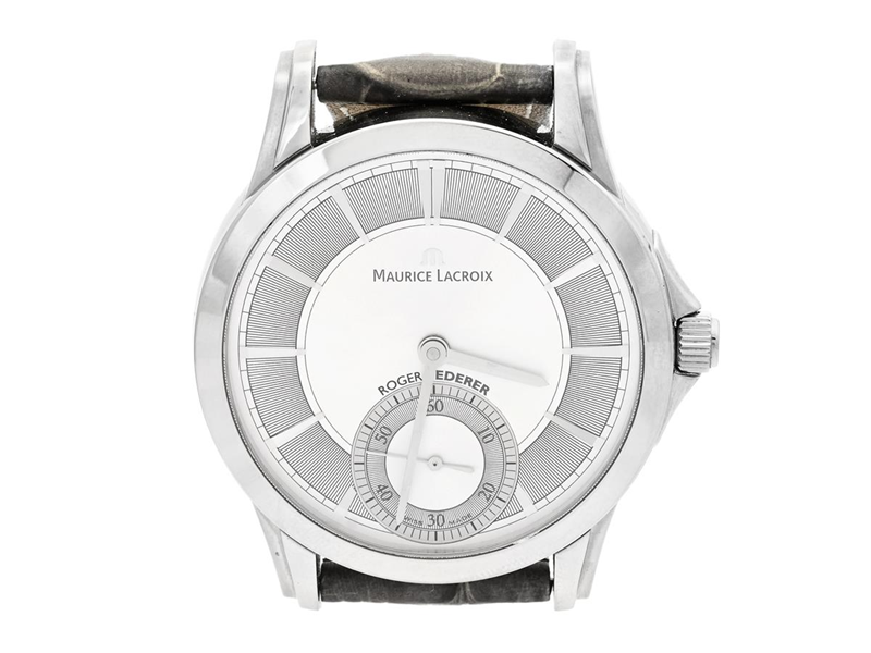 MAURICE LACROIX, Pontos "Roger Federer", Cal ML 108 (ETA 6498-1), Serial no. AK86464, Ref no. PT7528-SS001-130, men´s wristwatch, 43 mm, steel, manual winding, sapphire crystal, small seconds hand, display caseback, leather strap, folding clasp, certificate (not complete), approx. July 2006, box, paper box.