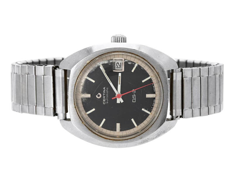 CERTINA, DS-2 (-T Swiss Made T-), Cal 25-651, Serial no. 7158986, Case no. 5801.300 (C.B), men´s wristwatch, 37 mm, steel, self winding, plastic crystal, date (defect), approx. 1972, metal bracelet not original.