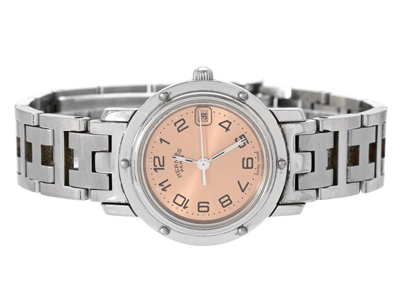 HERMÈS, Paris, Clipper, Serial no. 1418032, Case no. CL4.210, ladies´ wristwatch, 24 mm, steel, quartz, sapphire crystal (notch), damaged dial/hands, original bracelet, folding clasp, Ref no. 3758/2, length 155 mm, approx. 2008.