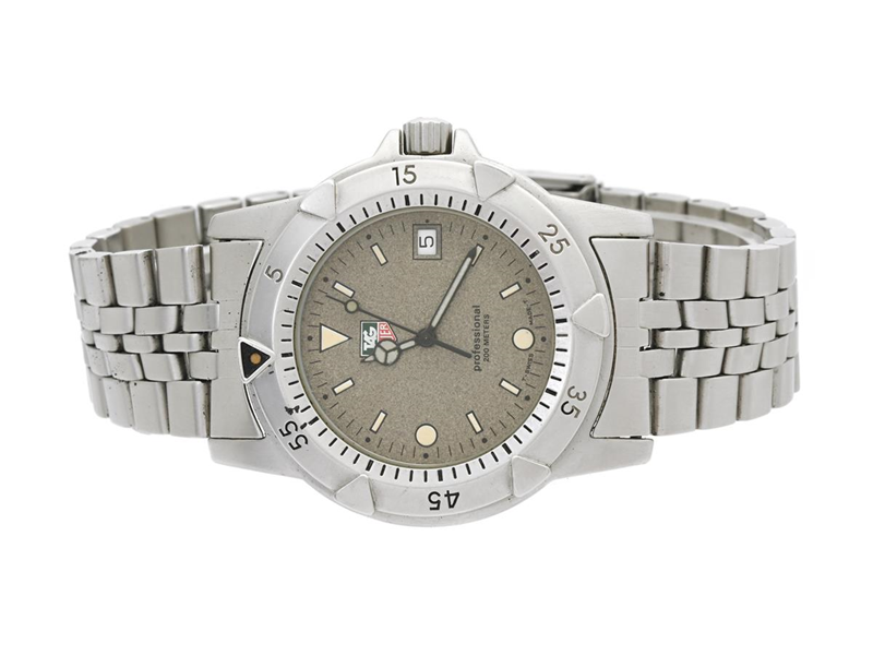 TAG HEUER, 1500 Professional (200 Meters, T-Swiss Made-T), "Granite Dial", Case no. 959706D, men´s wristwatch, 40 mm, steel, quartz, sapphire crystal (scratches), date, movement not signed, original bracelet, folding clasp, Ref no. 606/8, approx. 1992, box (damaged).