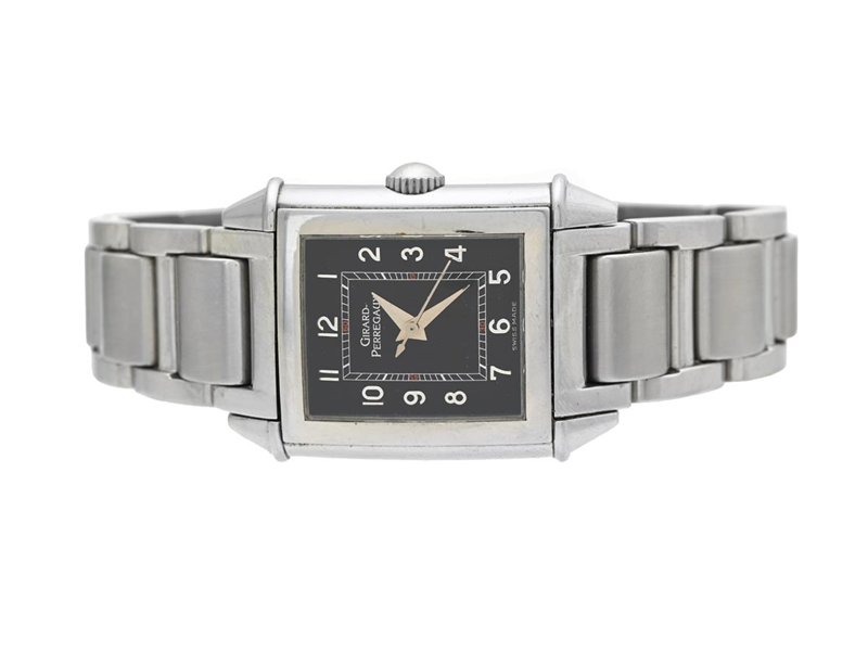GIRARD-PERREGAUX, Vintage 1945, Cal ETA 2660, Movement no. 2409, Serial no. 108, Case no. 2590, ladies´ wristwatch, 23,5 x 23 (33,5) mm, steel, manual winding, sapphire crystal, original bracelet, folding clasp, certificate, November 2000, box, paper box.