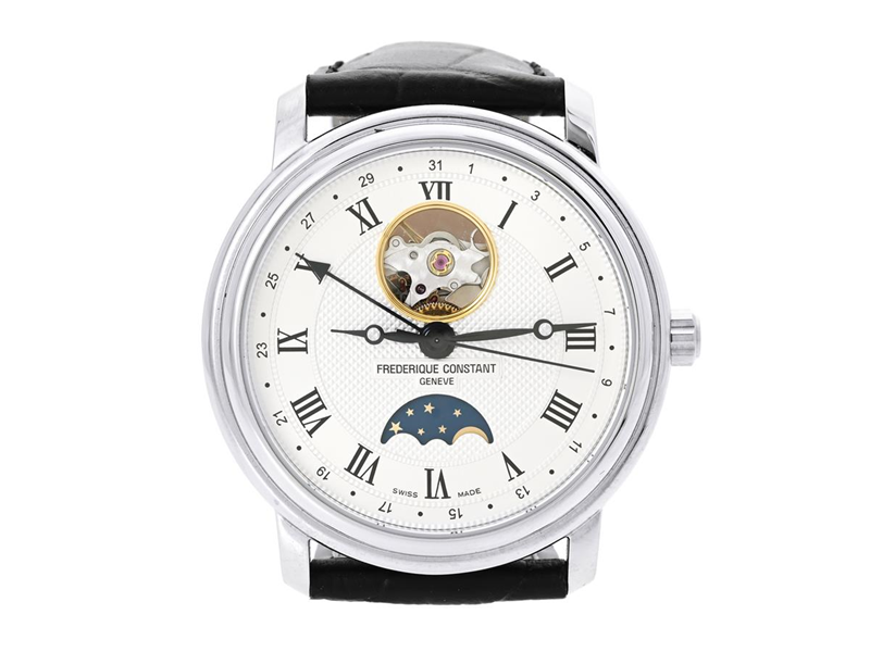 FREDERIQUE CONSTAN, Geneve, Classics Moonphase Date, Cal FC-335 (SW 200), Serial no. 4001477, Ref no. FC-335MC4P6, Case no. FC-330/335X4P4/5/6, men´s wristwatch, 40 mm, steel, self winding, sapphire crystal, date, moonphase, display caseback, leather strap, original buckle, certificate, May 2024, box, paper box.