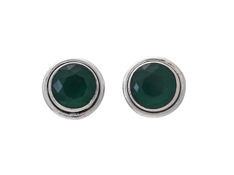 EARRINGS, sterling silver, green chalcedony, diameter 9,8 mm, pushback, weight 2,2 g.